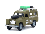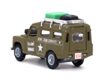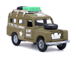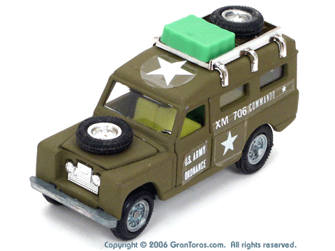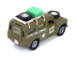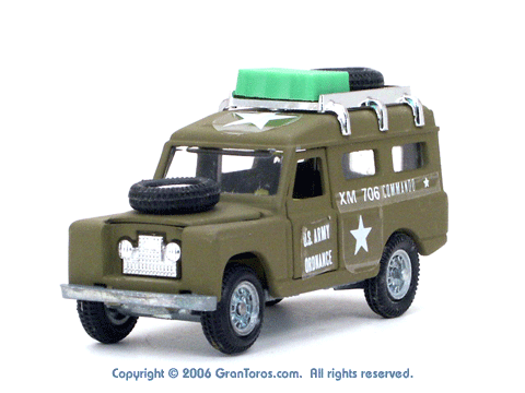 Left rear quarter view of a Mebetoys Land Rover Militare (Army), Model #A-67. |