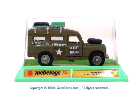 A Land Rover Militare (Army), Mebetoys Model #A-67, in the mid-1970s European package. |