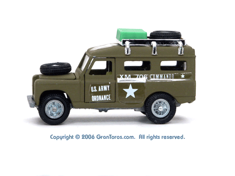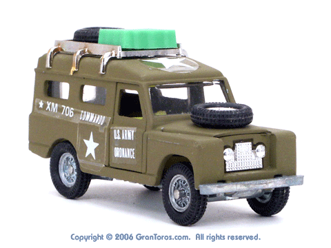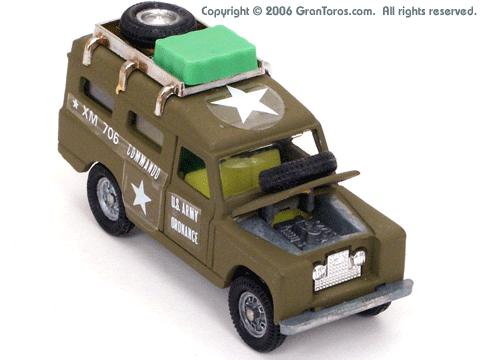 Left side view of a Mebetoys Land Rover Militare (Army), Model #A-67. |