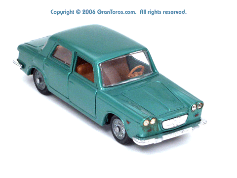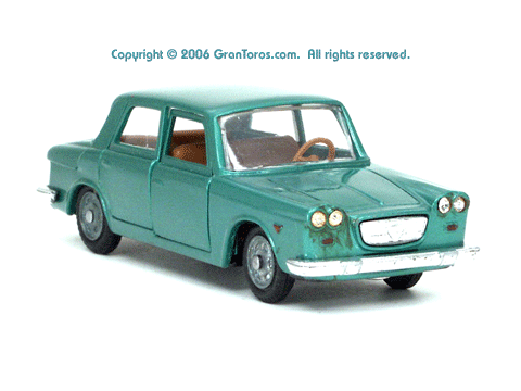 top front quarter view of a Mebetoys Lancia Flavia, Model #A-6. |