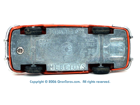 Bottom view of a Mebetoys Porsche 911S Rally LT 27 Rallye, Model #A-78, showing the markings. |