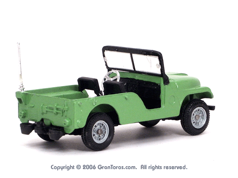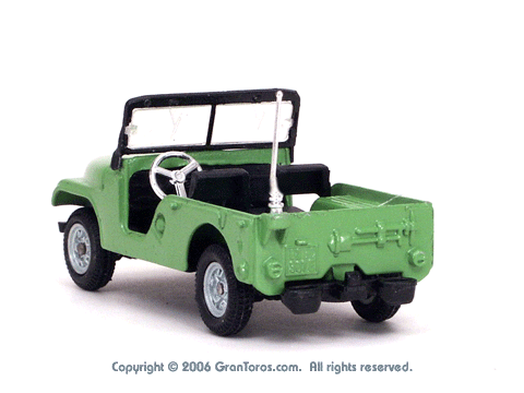 Left top rear quarter view of a Mebetoys Jeep Civile. |