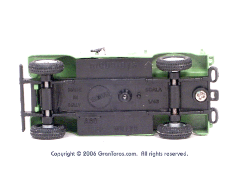 Bottom view of a Mebetoys Jeep Civile, showing the markings. |