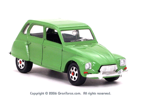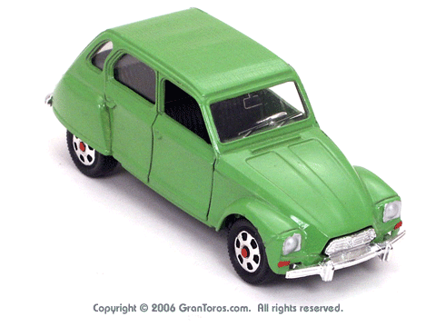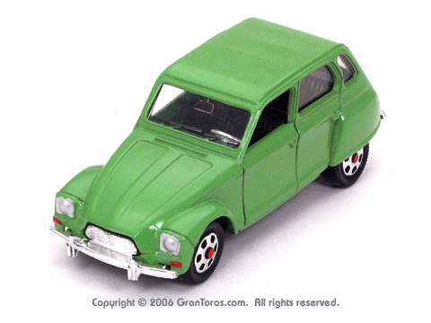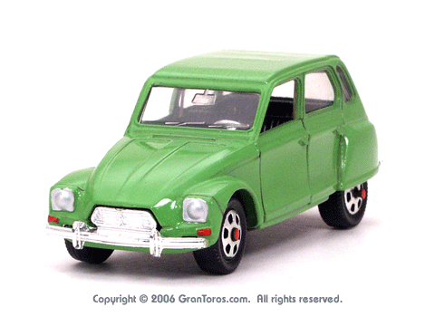 Right top front quarter view of a Mebetoys Citroën Dyane, Model #A-84. |