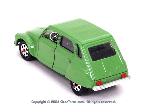 Left top rear quarter view of a Mebetoys Citroën Dyane, Model #A-84. |