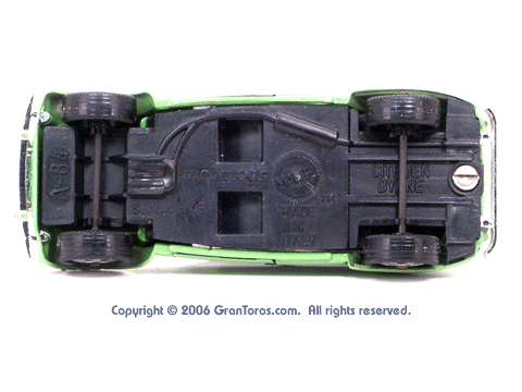 Bottom view of a Mebetoys Citroën Dyane, Model #A-84, showing the markings. |