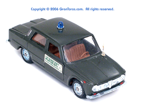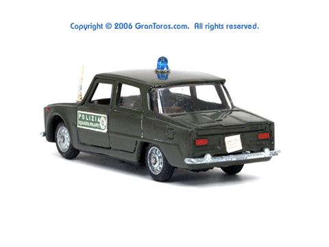 Rear top quarter view of a Mebetoys Alfa Romeo Squadra Mobile,