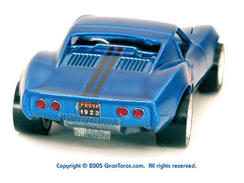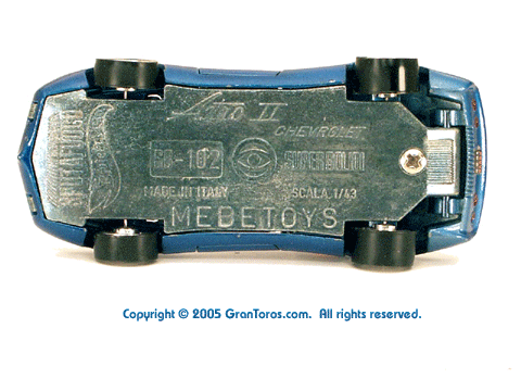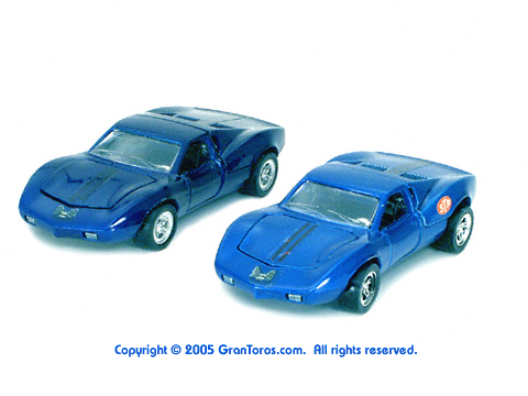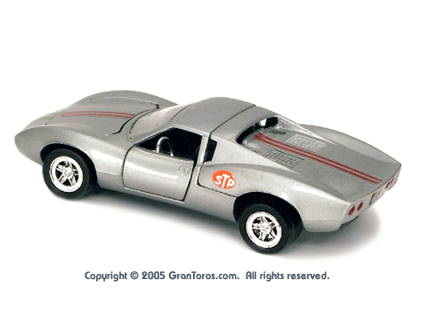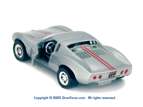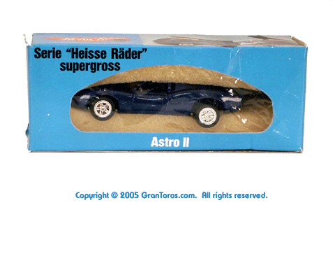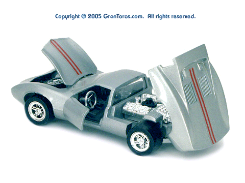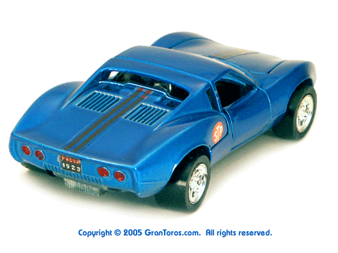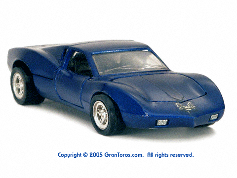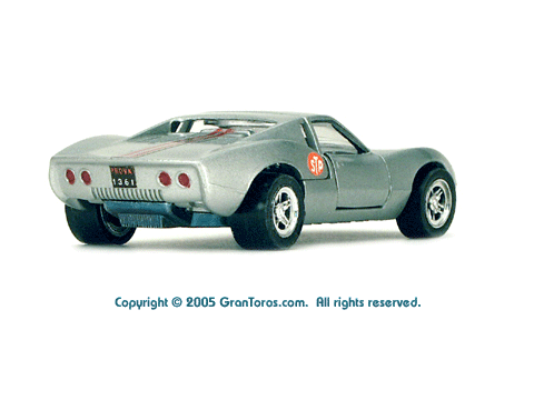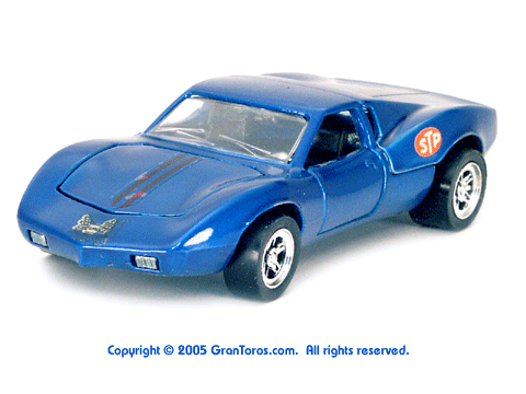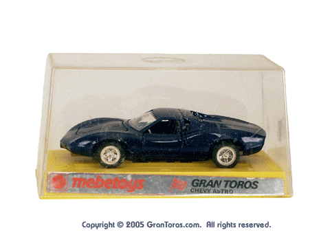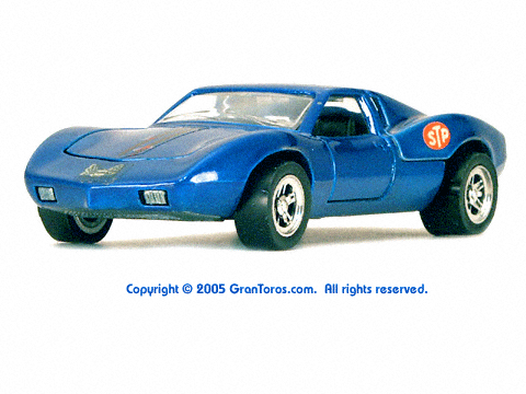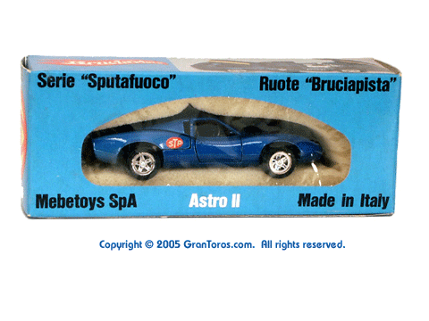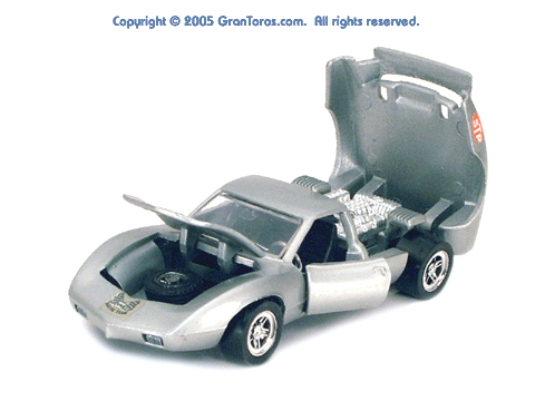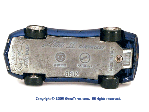 Gran Toros / Sputafuoco Chevrolet Astro IIThe Gran Toros Astro II, Mattel model # 6602, was based on a Chevrolet Astro II (XP-880) Corvette concept car that was first shown at the 1968 New York Auto Show. The actual car that was modeled is currently in the AACA Museum, Hershey, PA and is blue in color. It is sometimes confused with the more radically styled Astro I that was first shown in 1967. The Astro II used a mid-mounted 427 cubic inch (6,997cc) V8 engine. This model was one of the original Gran Toros and only released as a Gran Toros model # 6602. The earliest castings for the European market had the model number SB-102 (this early numbering system was based on the series being named SuperBoldi for the Italian market before the final name of Sputafuoco for the series). One of the original Gran Toros, it was part of the Sputafuoco and Heisse Räder Supergorss series and first appeared on the bottom of the North American box and the 1970 Mattel Toyfair catalog, the 1970 Mattel Italian Dealer catalog and the 1970 International catalog. |