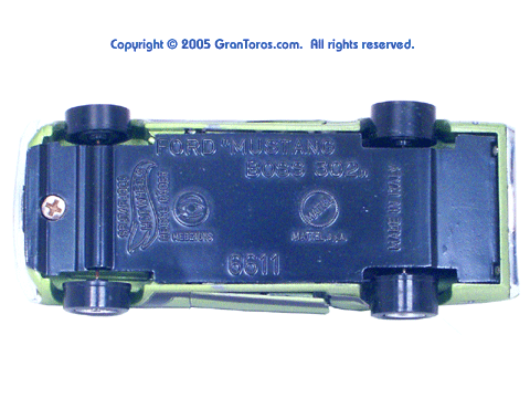 Bottom view of a Gran Toros Mustang Boss 302 showing the markings / logos. |