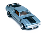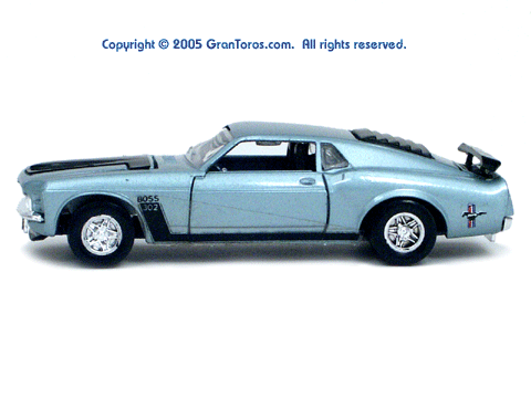 Left side view of a light blue Gran Toros Mustang Boss 302 with black interior. |