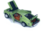 Brown interior green Gran Toros Mustang Boss 302 with open doors, hood and trunk. Note the "folded down" passenger seat. |