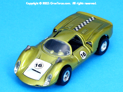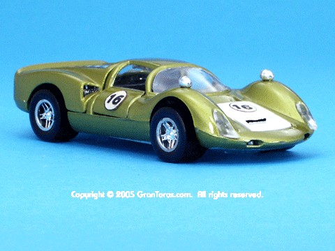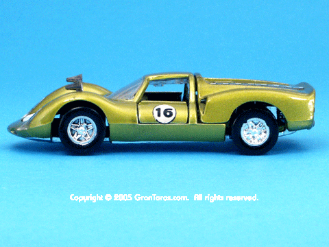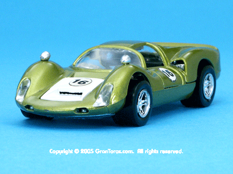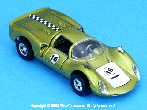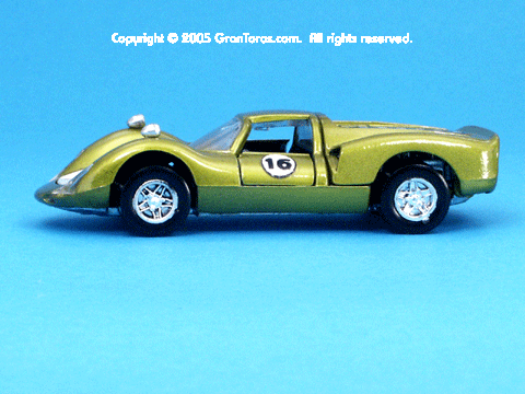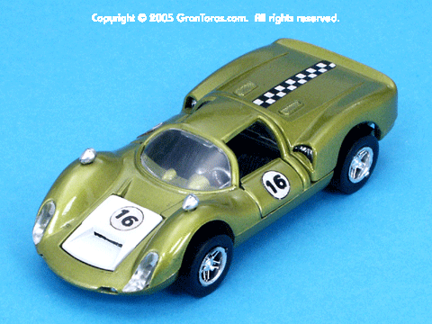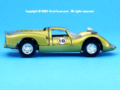 Left side view of a metallic olive-green Gran Toros Porsche Carrera 10 (standard mirrors). |