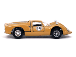 Right side view of a yellow ochre Gran Toros Porsche Carrera 10 with white front hood. |