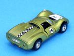 Right rear quarter view of a metallic olive-green Gran Toros Porsche Carrera 10 (variation mirrors). |