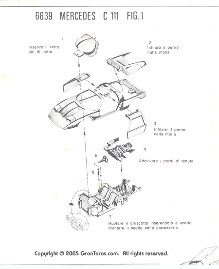 Figure 1 of the Mebetoys (Gran Toros) Mercedes C111 kit instructions. |