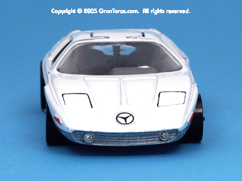 Front view of a white Gran Toros Mercedes C111 (grey interior). |