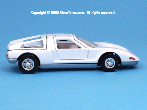 Right side view of a white Gran Toros Mercedes C111 (grey interior). |