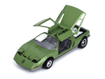 Left side view of a metallic green Gran Toros Mercedes C111 (brown interior) with open "gull wing" door. |