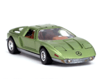 Front quater view of the metallic green Gran Toros Mercedes C111 with grey interior (headlights off). |