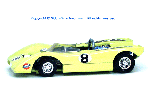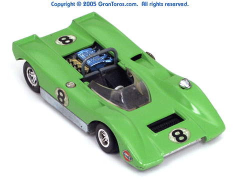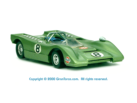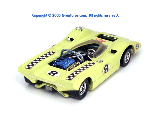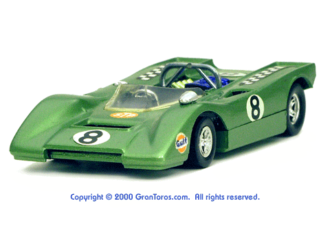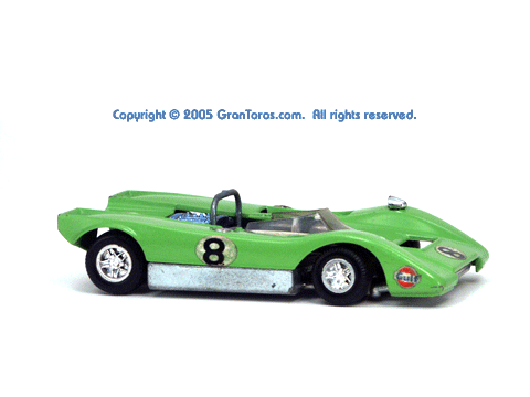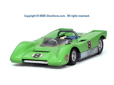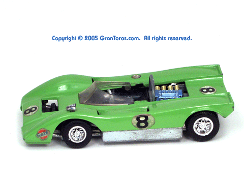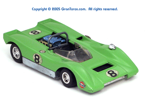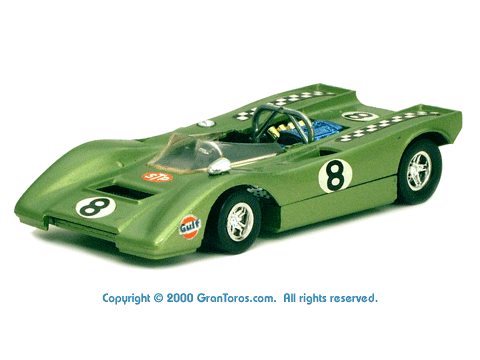 Right side view of a very rare enamel green Gran Toros Lola T-212. |