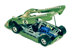 Top rear left quater view of a very rare enamel green Gran Toros Lola T-212. |