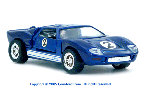 Top left side view of a blue Gran Toros Ford Mk II. |