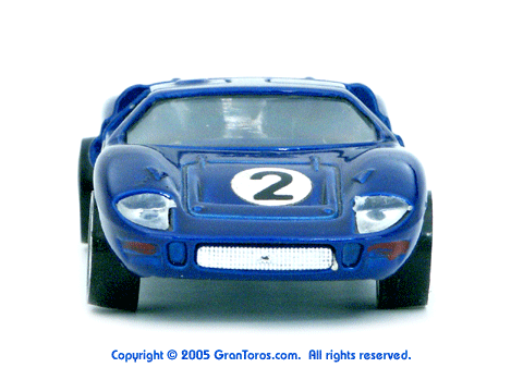 Head-on view of a blue Gran Toros Ford Mk II. |