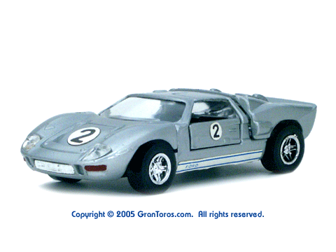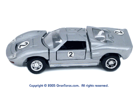 Top left side view of a silver Gran Toros Ford Mk II. |