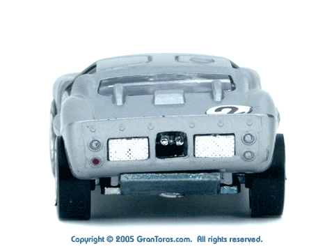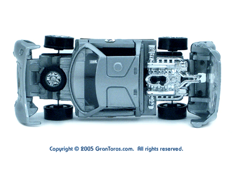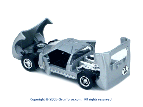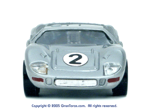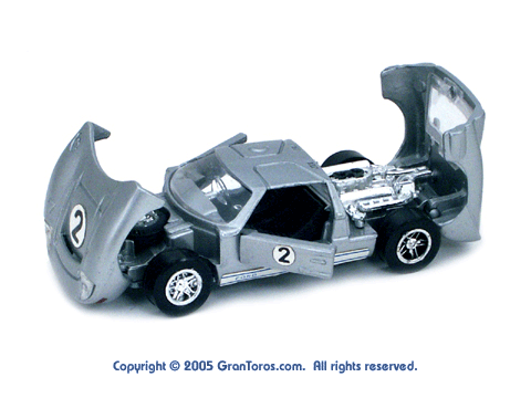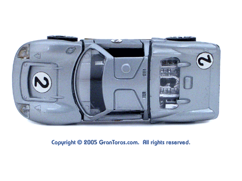 Bottom view of a silver Gran Toros Ford Mk II showing the logos and markings. |