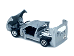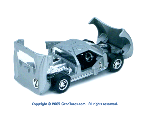 Top view of a silver Gran Toros Ford Mk II with all doors and compartments open. |