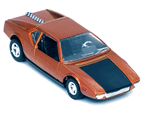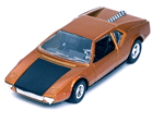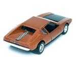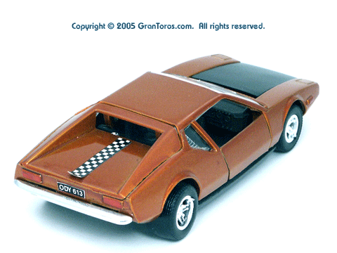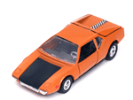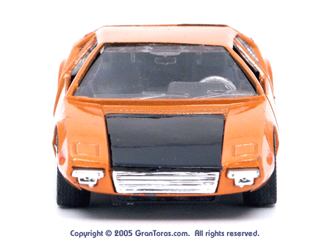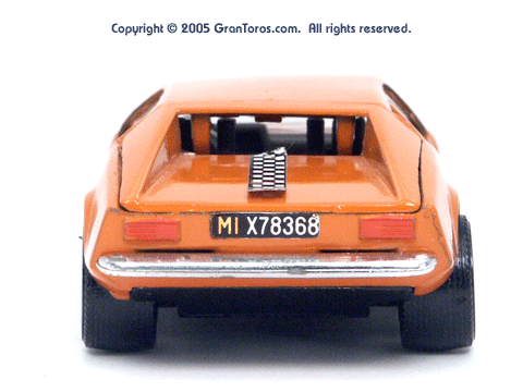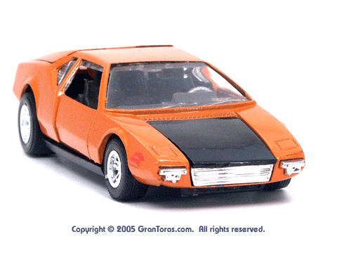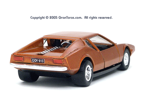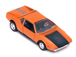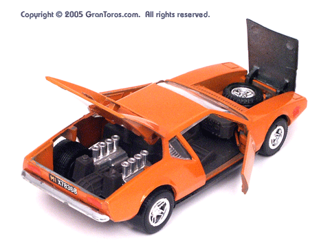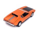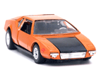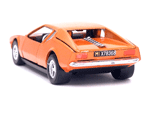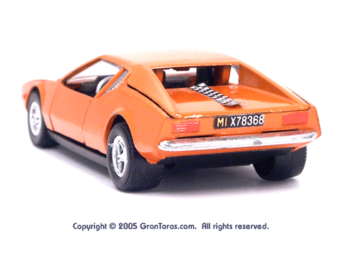 Top rear quater view of an enamel orange Gran Toros Pantera DeTomaso. |