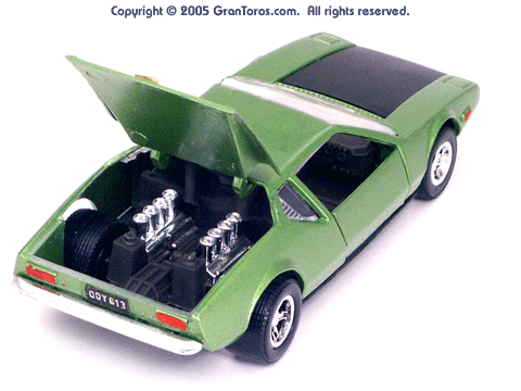 green Gran Toros Pantera DeTomaso with open engine compartment