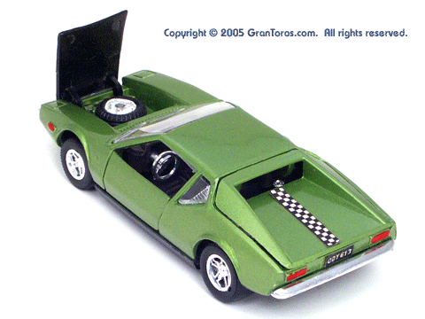 green Gran Toros Pantera DeTomaso with the front compartment open. |