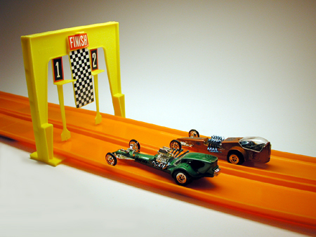 Toros Astro II and Ferrari Can Am from the match Race Set approaching