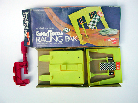 two Gran Toros cars, a Universal Clamp, a Start Gate, a Finish