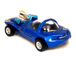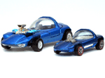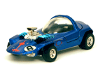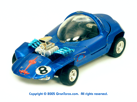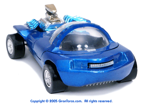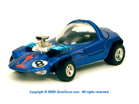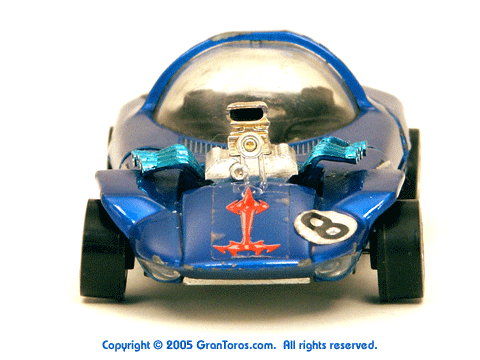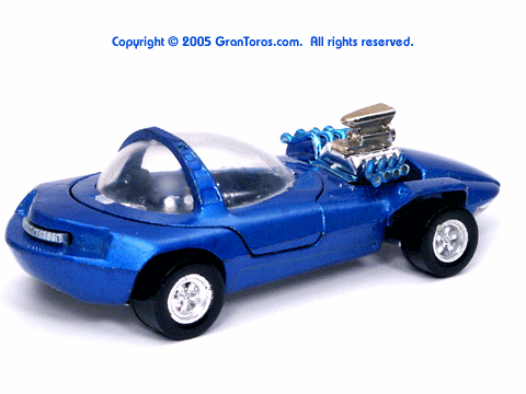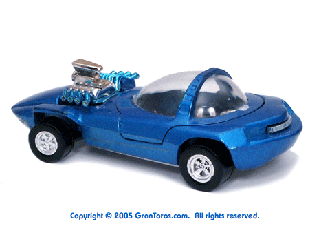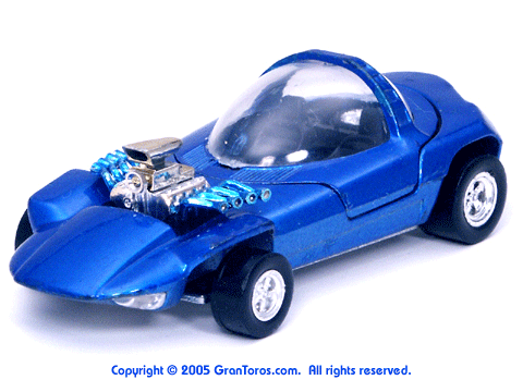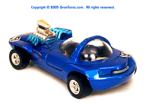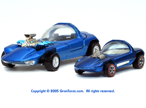 A blue Gran Toros Silhouette next to a U.S. spectraflame blue Hot Wheels "redline" Silhouette. |