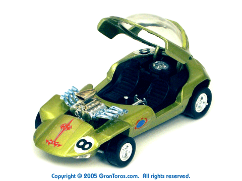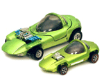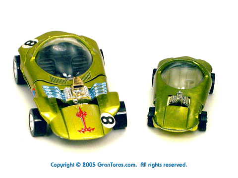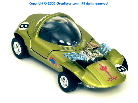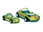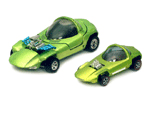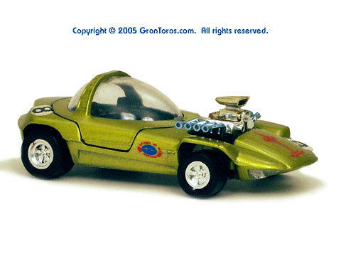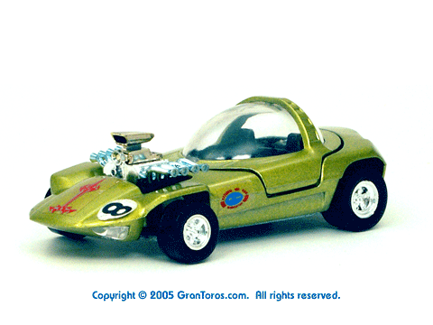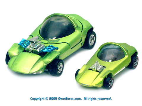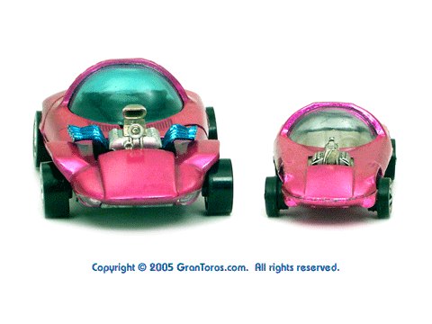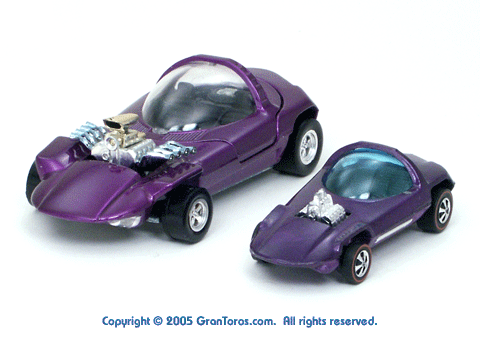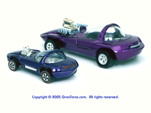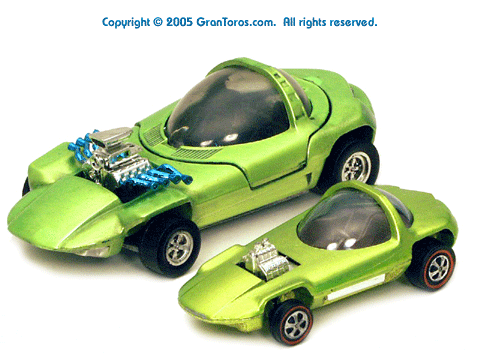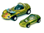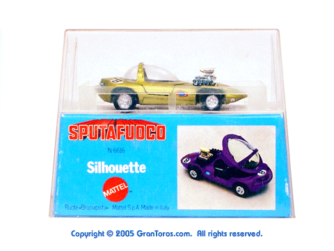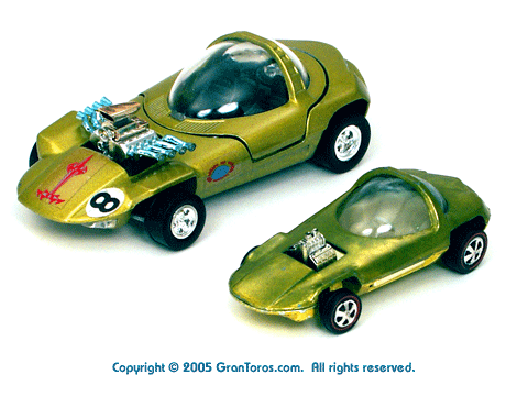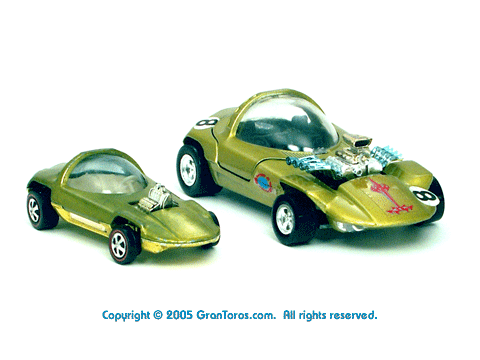 A gold Gran Toros Silhouette next to a Hot Wheels "redline" Silhouette. |