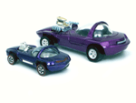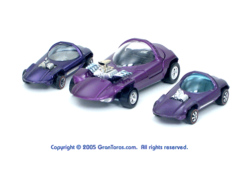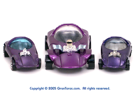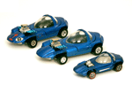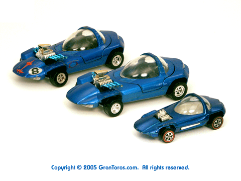 Two blue Gran Toros Silhouettes next to a U.S. spectraflame blue Hot Wheels "redline" Silhouette. |
