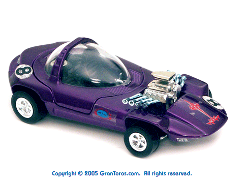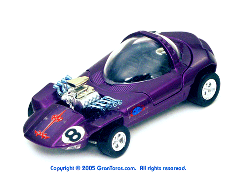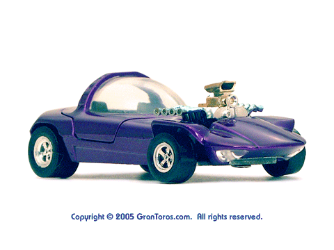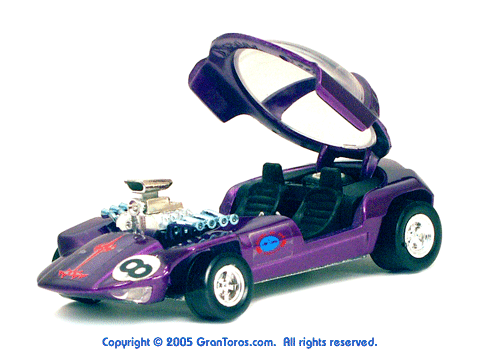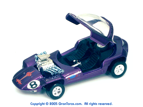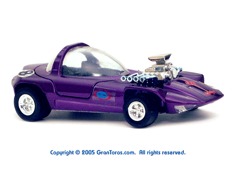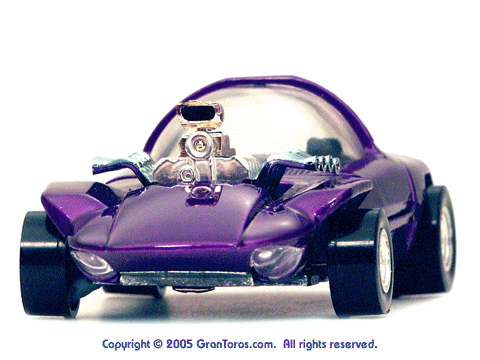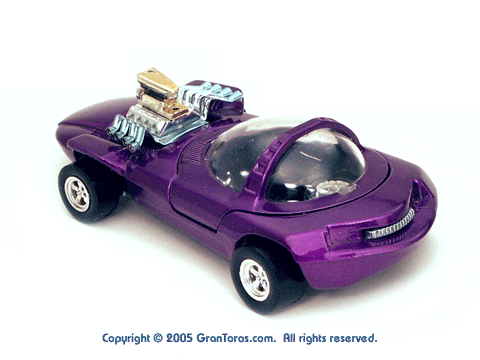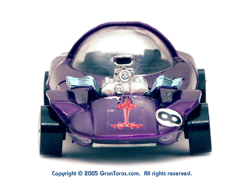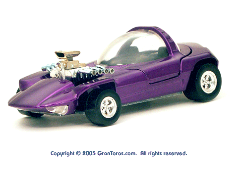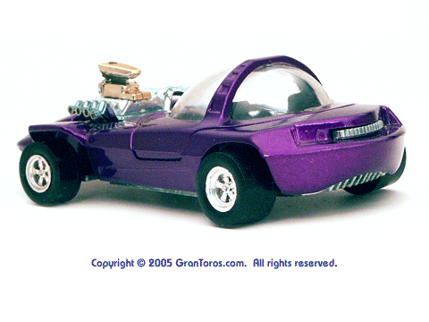 Right rear quarter view of a purple Gran Toros Silhouette with open cockpit. |