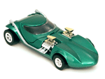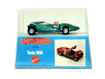 Font view of a green Gran Toros TwinMill next to an original Spectraflame Hot Wheels TwinMill ("Redline"). |