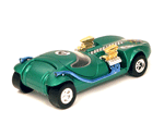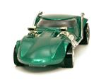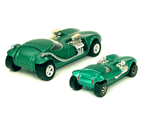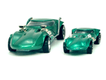 Left front view of a green Gran Toros TwinMill next to an original Spectraflame green Hot Wheels TwinMill ("Redline"). |