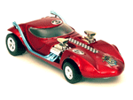 Top front view of a red Gran Toros TwinMill next to an original Spectraflame rose Hot Wheels TwinMill ("Redline"). |