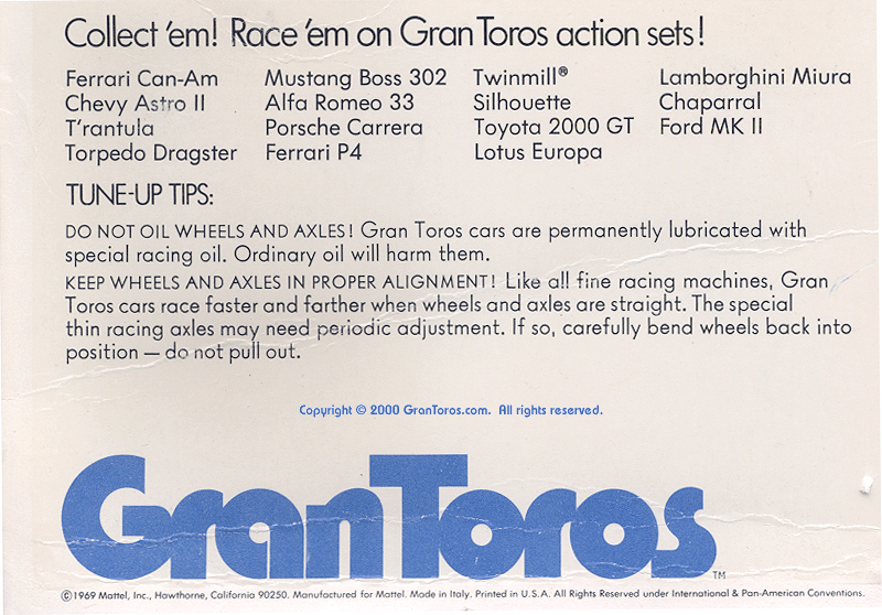 This is the bottom of the North American box. It has a list of the first Gran Toros models.