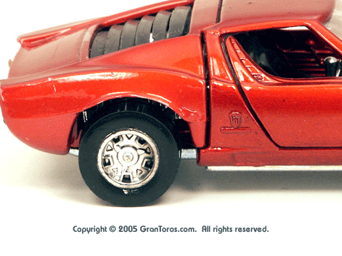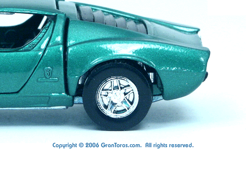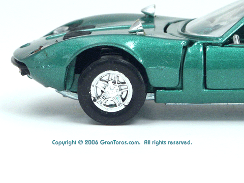 on the front wheel of a Gran Toros Lamborghini Miura.