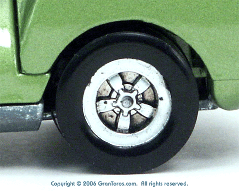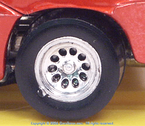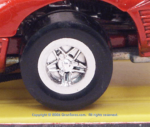 on the rear wheel of aGran Toros Ferrari P4. Note the extra width